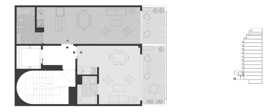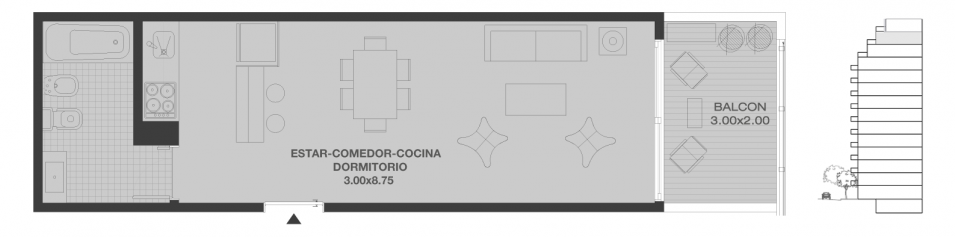 Las imágenes y los planos pueden no concordar en su totalidad con la realidad de la construcción y están sujetos a modificaciones. El equipamiento y el mobiliario que se exhibe es meramente ilustrativo y al solo efecto de esta presentación. En la planta no están ubicados los elementos estructurales. Las superficies incluyen un 10% correspondiente a amenities y espacios comunes. Dichas superficies incluyen muros y ductos. Las superficies finales surgirán de los planos de propiedad horizontal.